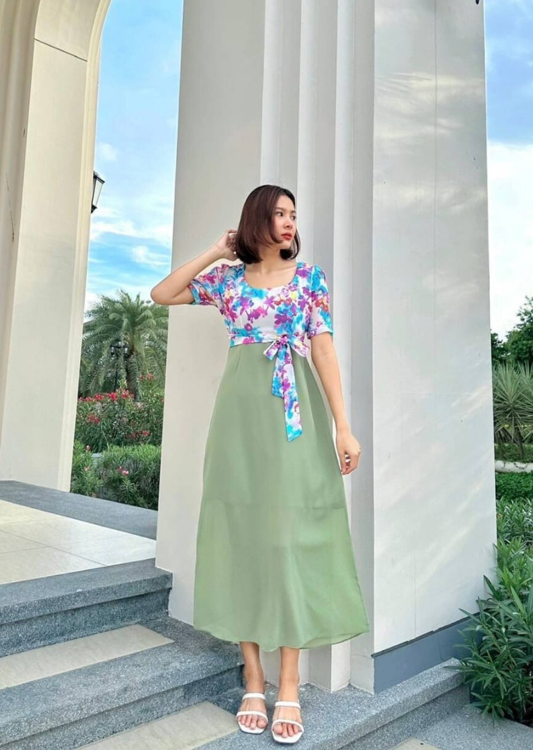 แบบ : เดรสยาว ผ้า : ชีฟอง สี : ม่วง, มิ้นท์, กรม
